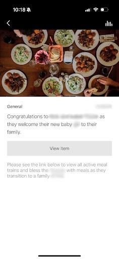 Moving forward, in order to see an active list of running meal trains you can view them anytime at https://hub.emmausroadsf.com/meal-trains. However, we will be sending a notification to the app with a button to that page along with an announcement anytime there is a new meal train link to share.