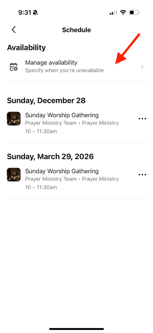 In order to see your volunteer requests you can click on your profile circle in the top right, scroll down to “Schedule” and click it. Then you will see “Availability” and the option beneath that to “Manage availability”. There you can set any unavailable dates and see all of your upcoming volunteer commitments.