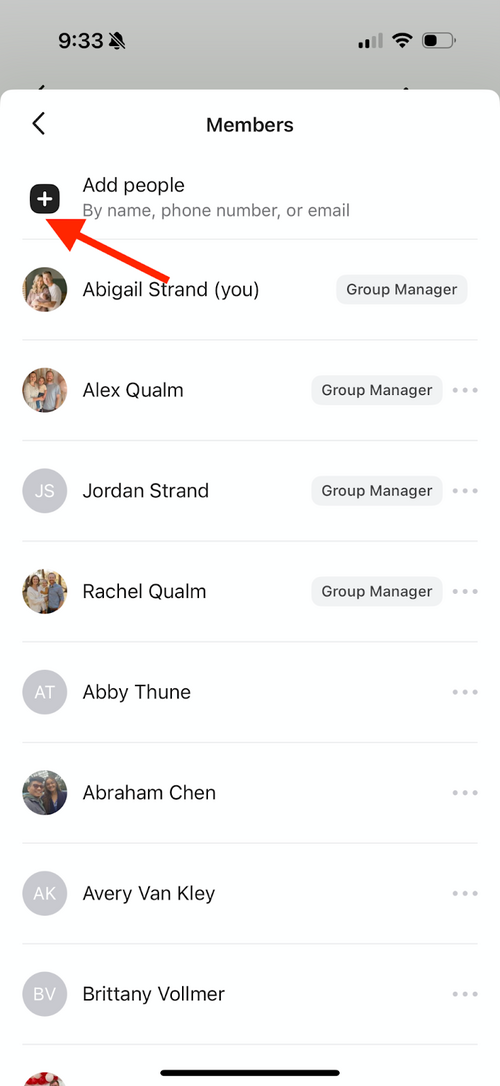 In order to add someone to a group, you can go to your group, select the arrow next to it, then again next to the number of members, click “Add people”, and type their name in from there.