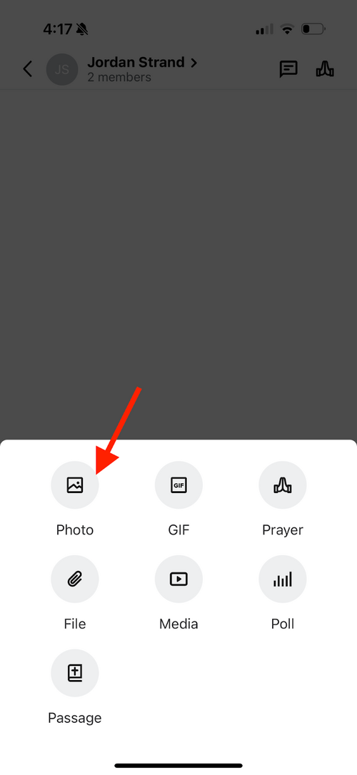 Click the photo button (you will only be able to select one photo from your camera roll):