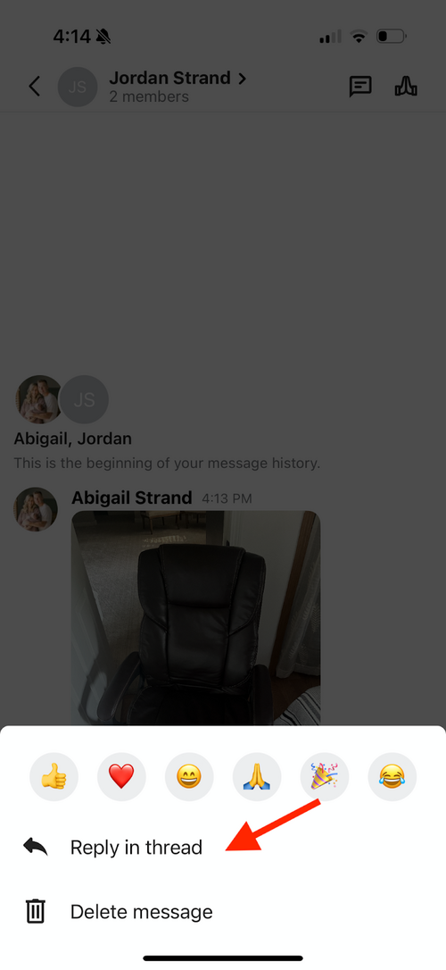 Click “Reply in thread”: