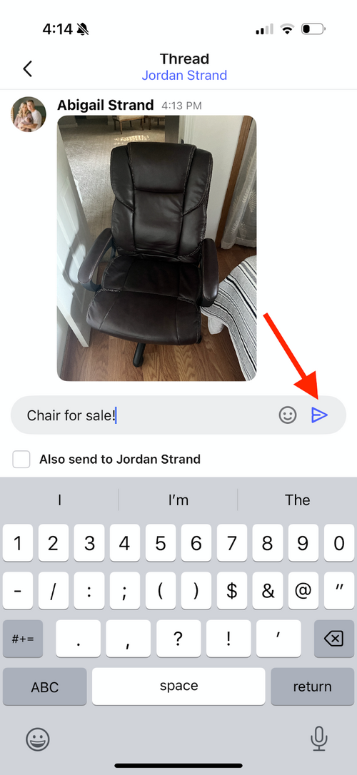 Type your message details or add any more single photos and click the blue arrow. Please note: do not check the “also send to” box: